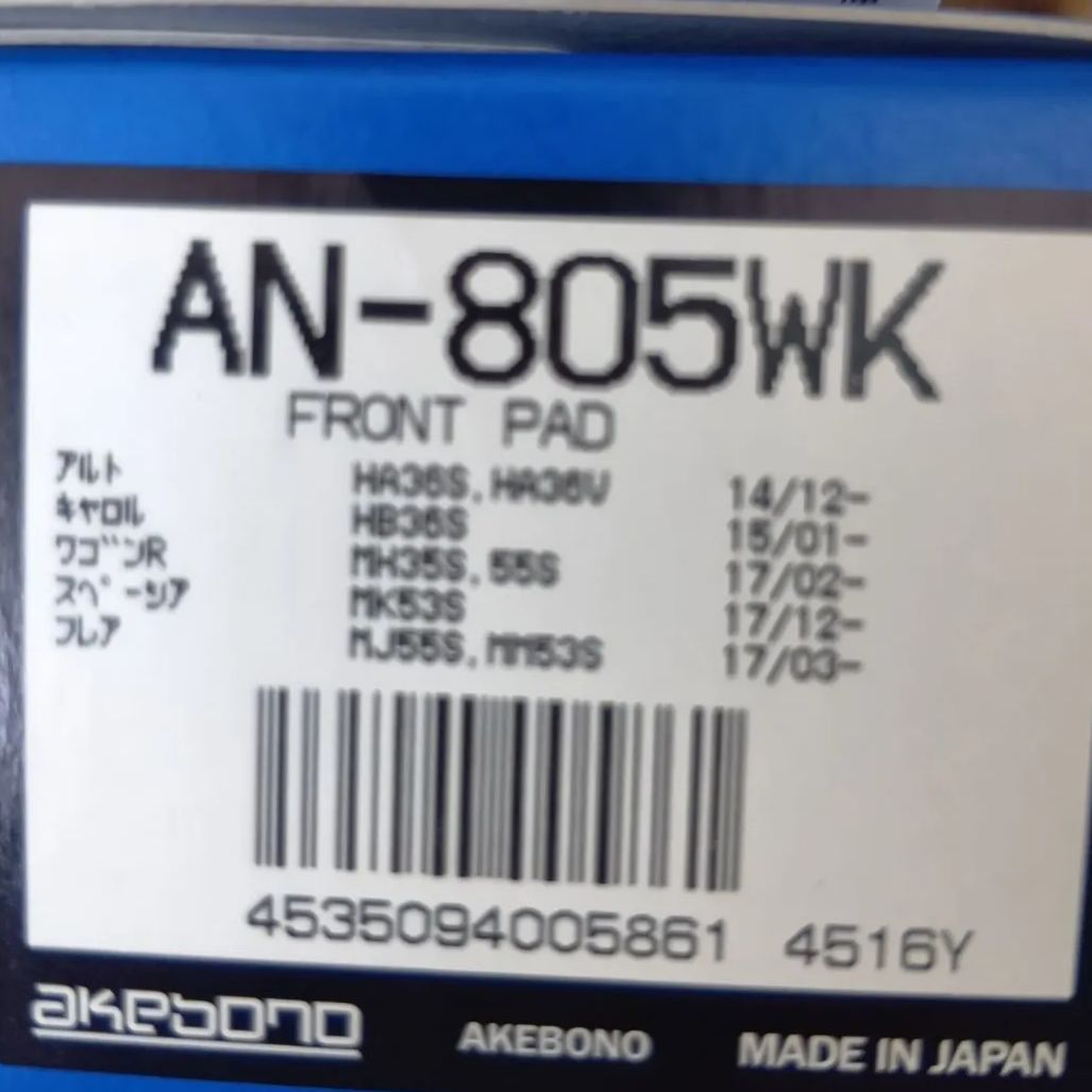 【新品】曙ブレーキ AN-805WK フロントパッド 軽自動車用(アルト・キャロル・フレア等)