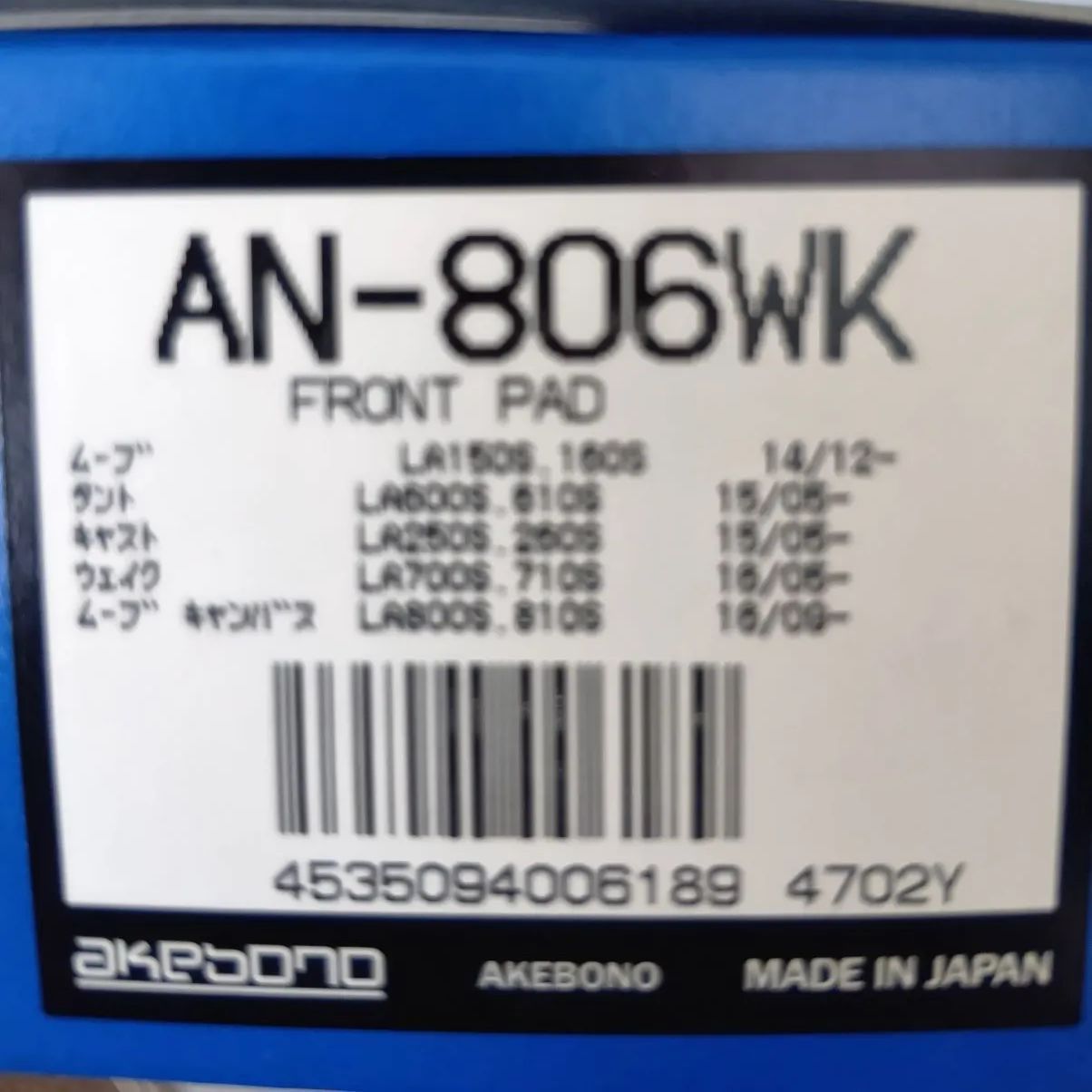 AKEBONO AN-806WK ブレーキパッド ムーヴ/タント/キャスト対応 未使用 在庫品