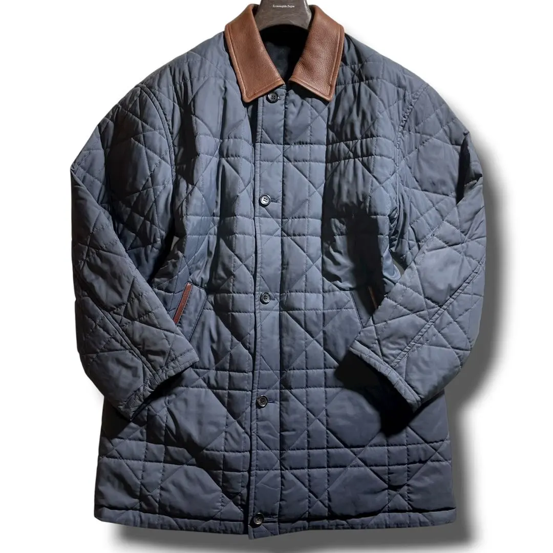 エディフィス キルティングフードコート ネイビー レザートグル 美品 秋冬