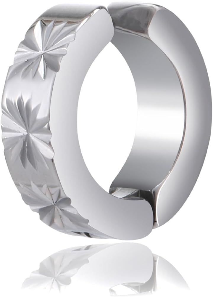 AREUM イヤーカフ メンズ 2つ入り シンプル かっこいい シルバーカラー ワンタッチ お洒落 柄付き ピアス穴不要 イヤリング ((1))