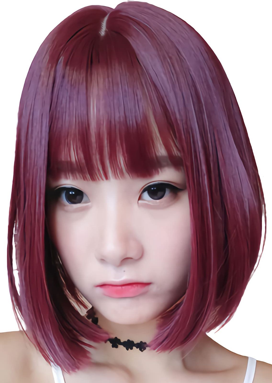 レディース 女性 ハロウィン ストレート ぱっつん フルウィッグ 自然 かつら 前髪あり 赤髪 ミディアム 赤 ヘア レッド さらさら ボブ 軽量 ショート ロリータ ウィッグ ワインレッド