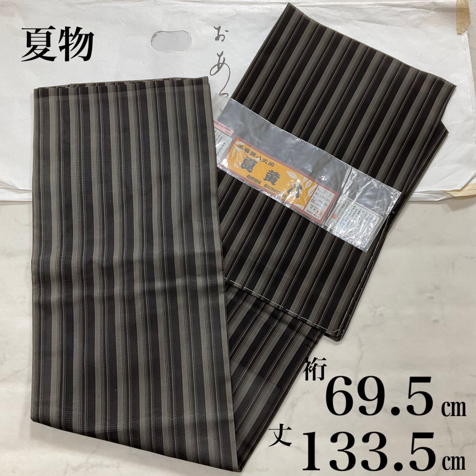 kimono+one*男前屋*厳選*夏物*未使用*手織り男夏着物*本場黄八丈染*黒黄八丈*夏黄八*草木染*ガード加工*居敷当て付き*証紙付き*仕付け糸付*裄69.5丈133.5*