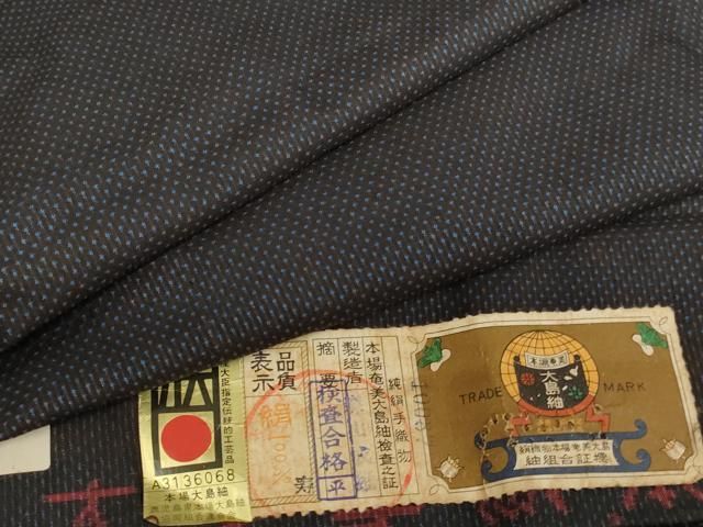超美品 正絹 メンズ 反物 本場大島紬 着物 紺 二反分 一疋 イッピキ