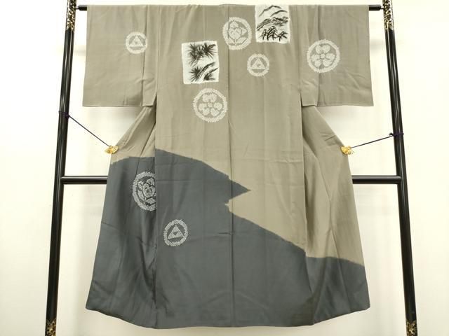 平和屋着物■男性 長襦袢 袷 絞り 手描き 家紋色紙松文 正絹 逸品 DABB6813ea
