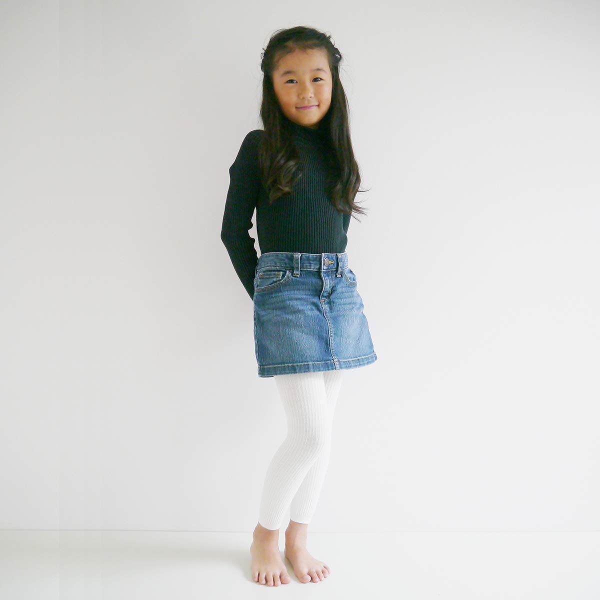 【在庫セール】リブスパッツ 子供 (フィロワ) キッズ (120cm / 10分丈 / 白 無地) スパッツ タイツ Filloie レギンス (綿100 / 厚手 防寒) 子供用スパッツ 女の子 子ども