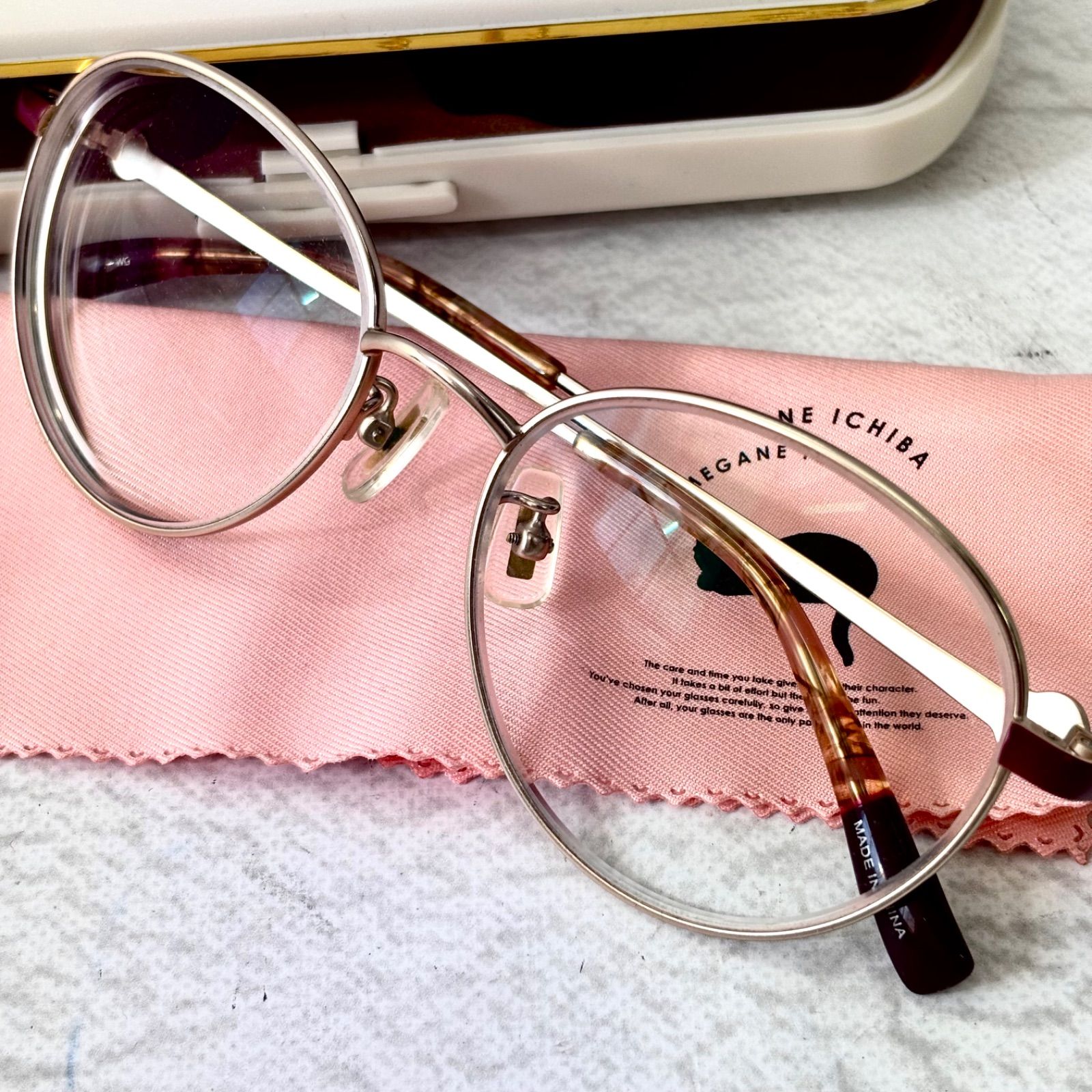 ゴールドメタルフレームメガネ マーブル模様のテンプル