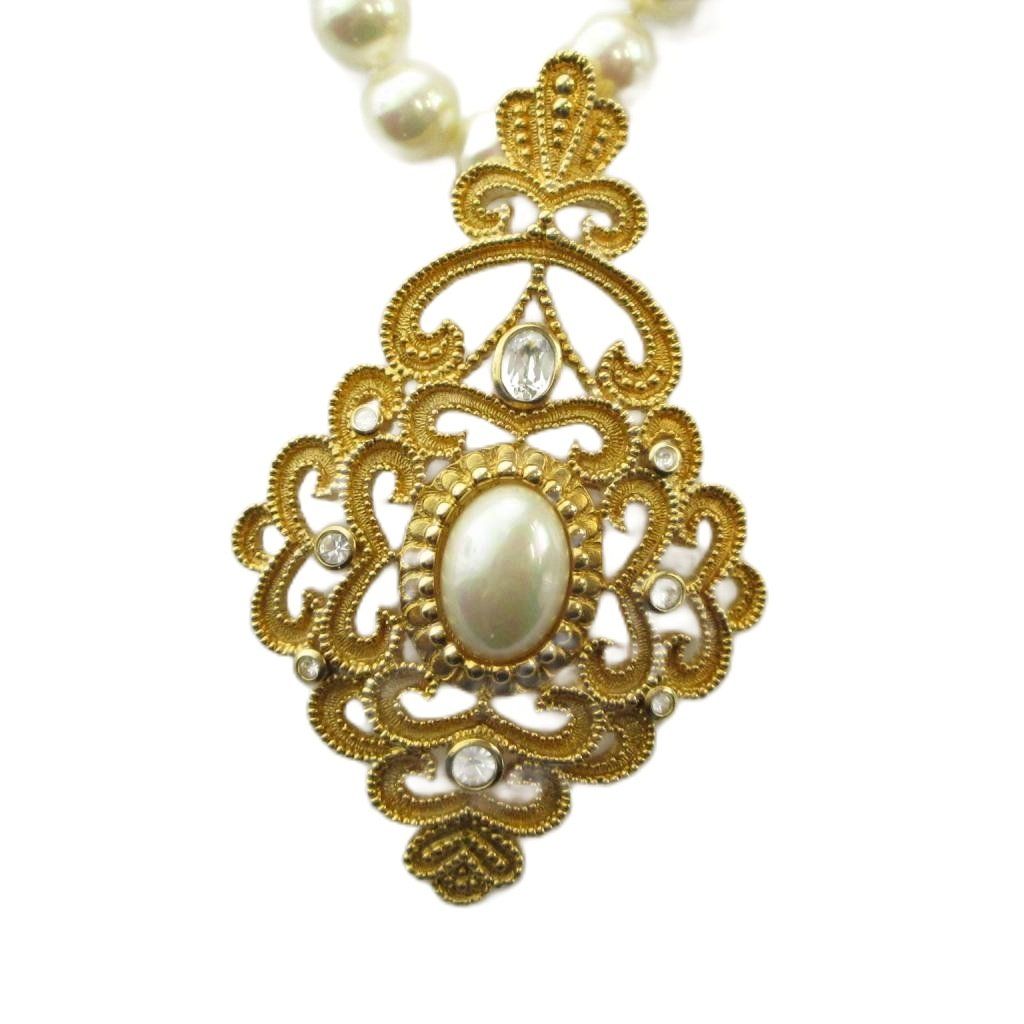 クリスチャンディオール Christian Dior ネックレス アクセサリー ペンダント パール 真珠 ラインストーン ヴィンテージ風 10mm ゴールド色 ■GY18 /MQ ■OH