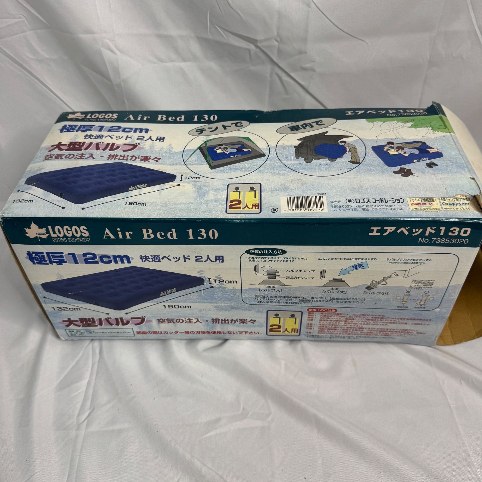 【訳あり】 LOGOS ロゴス Air Bed 130 エアベッド 73853020 極厚12cm 2人用 キャンプ アウトドア テント 車中泊 レジャー 防災 大型バルブ 130×190cm エアーマット エアーベッド 長期保管品 ベタつきあり