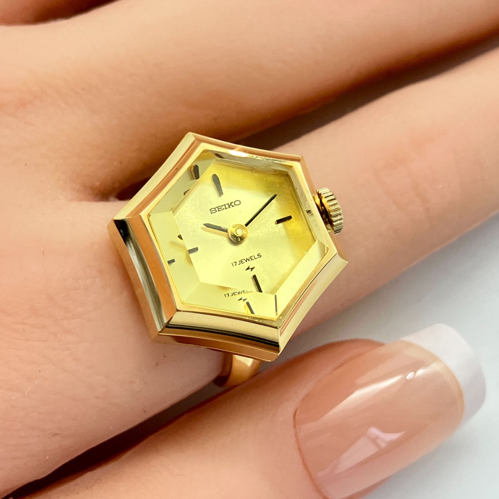 【稼働】セイコー SEIKO 11-768A 17石 手巻き リングウォッチ ゴールド ヴィンテージ アンティーク ASGP ヘキサゴン 金メッキ 希少