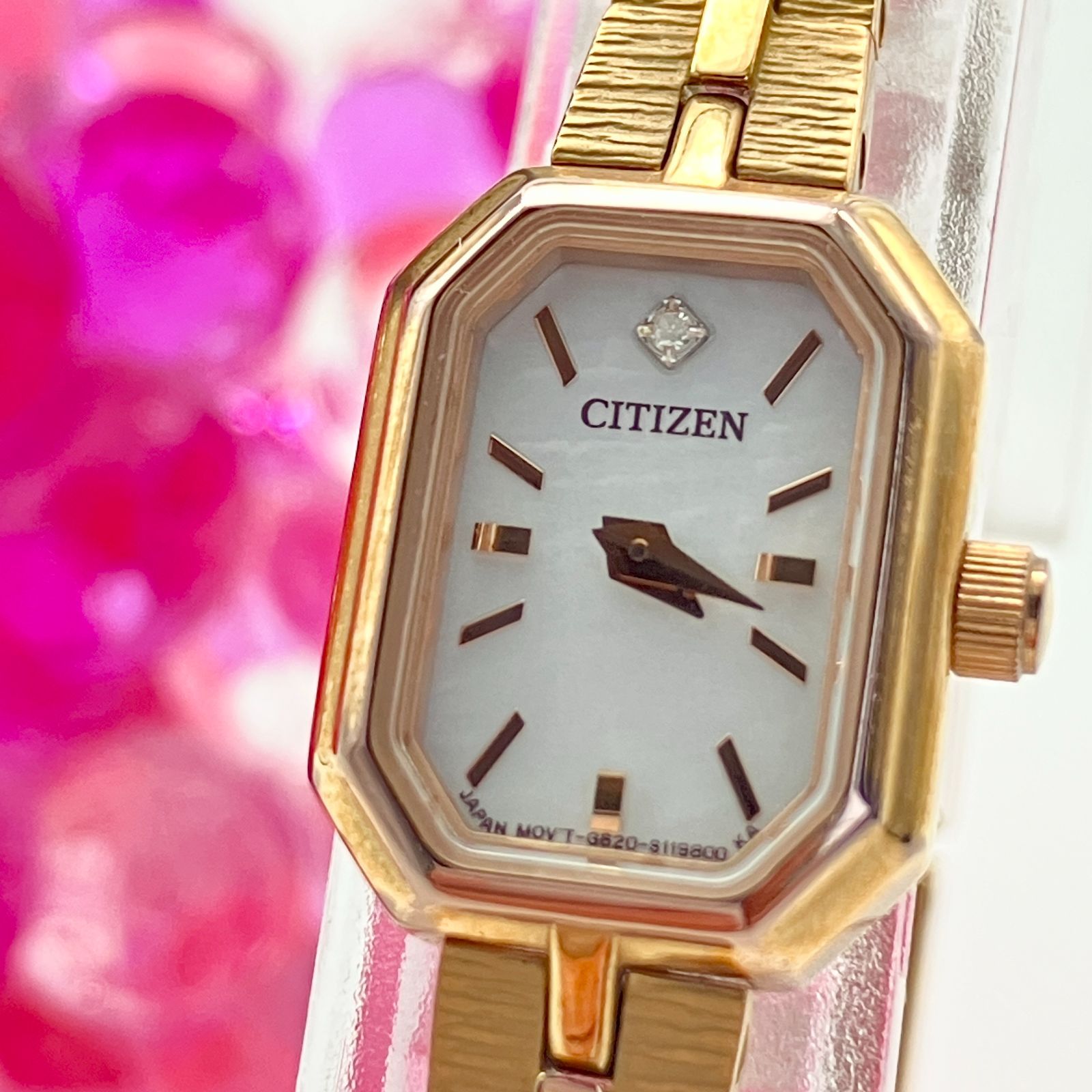 【稼働】シチズン Kii キー エコドライブ 腕時計 G620-S079527 1Pダイヤ シェル ピンクゴールド ソーラー バングルウォッチ ブレスウォッチ