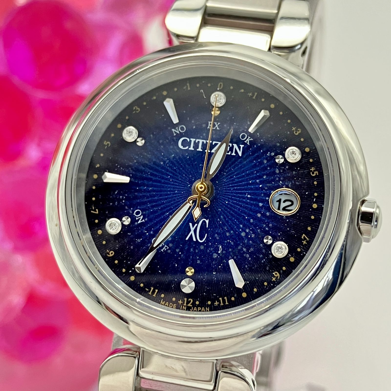 【稼働】シチズン CITIZEN クロスシー xC H060-T026583 ソーラー電波 チタン ブルー文字盤 ダイヤモンド エコドライブ 腕時計 レディース サファイアガラス