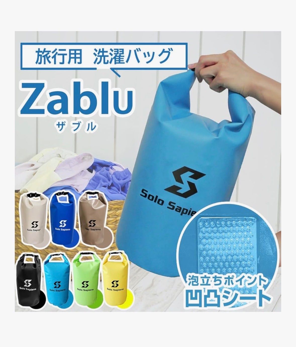ザブル 洗濯バッグ 洗濯袋 ランドリーバッグ 旅行 便利グッズ 持ち運び 防水 携帯 軽量 コンパクト 手洗い おしゃれ着洗い アウトドア 防災