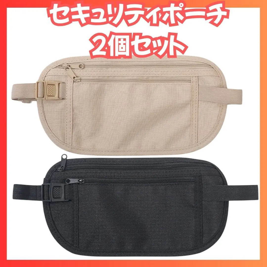セキュリティポーチ 2個セット 旅行 防犯 貴重品入れ ウエストポーチ