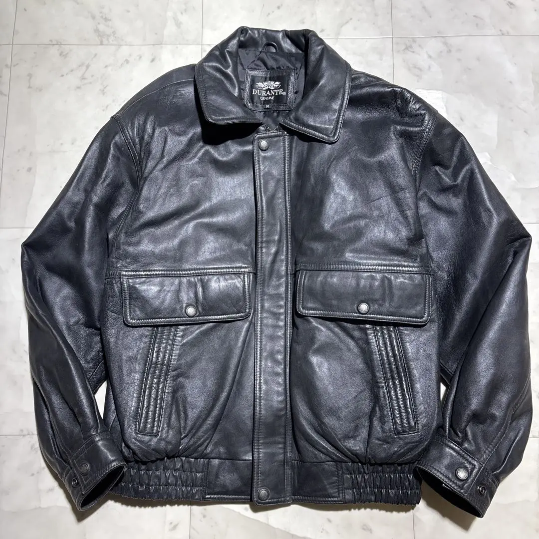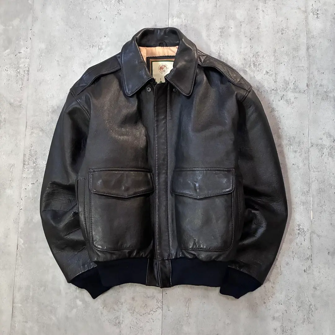 古着 a2 フライト 短丈 レザージャケット 羊革 無骨なデザイン L 黒