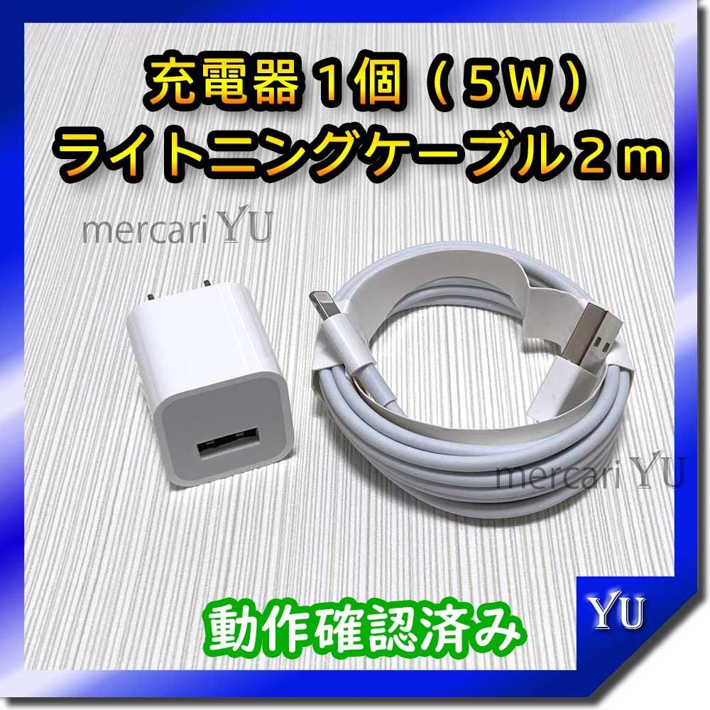 2mケーブル&充電器セット【計2点】 ライトニングケーブル iPhone USB充電器 アイフォン コンセント ACアダプター 純正品同等 充電コード 新品 <管理番号:M6>
