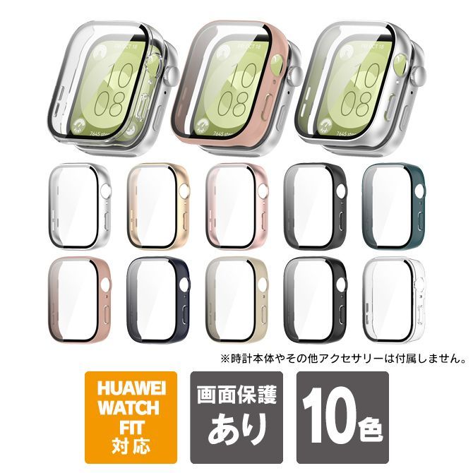 Huawei watch fit 3 本体 保護 Huawei watch fit 3 カバー アクセサリー Huawei watch FIT 3 ケース カバー ファーウェイウォッチ フィット3 画面 ディスプレイ スクリーン ハード PC ガラスフィルム