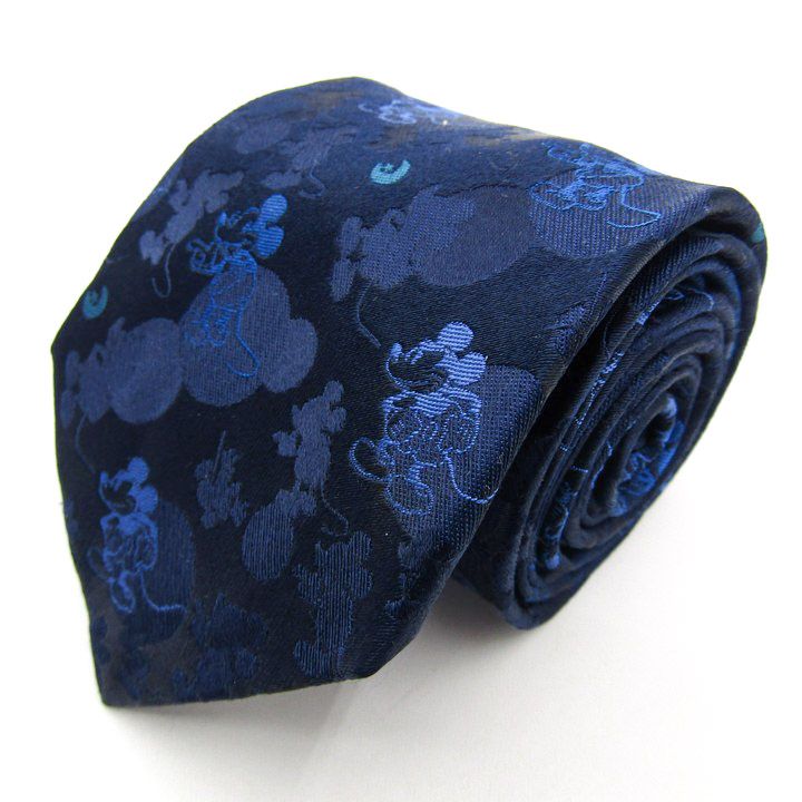 ディズニー ブランドネクタイ ミッキー 総柄 キャラクター柄 シルク 日本製 PO メンズ ネイビー Disney 【中古】