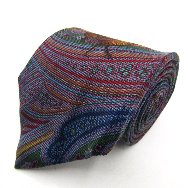 ラルフローレン ブランドネクタイ 総柄 ペイズリー 動物柄 鳥 シルク PO メンズ ブルー RALPH LAUREN 【中古】