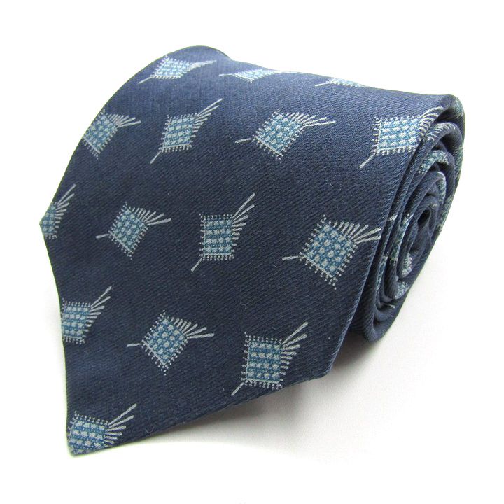 レミュー ブランド ネクタイ チェック柄 シルク混 PO メンズ ブルー LES MUES 【中古】
