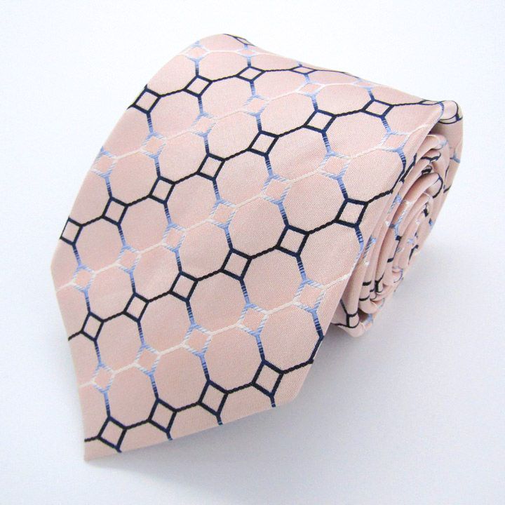 キミジマ ブランド ネクタイ 格子柄 小紋柄 シルク 日本製 PO メンズ ピンク KIMIJIMA PARIS TOKYO 【中古】