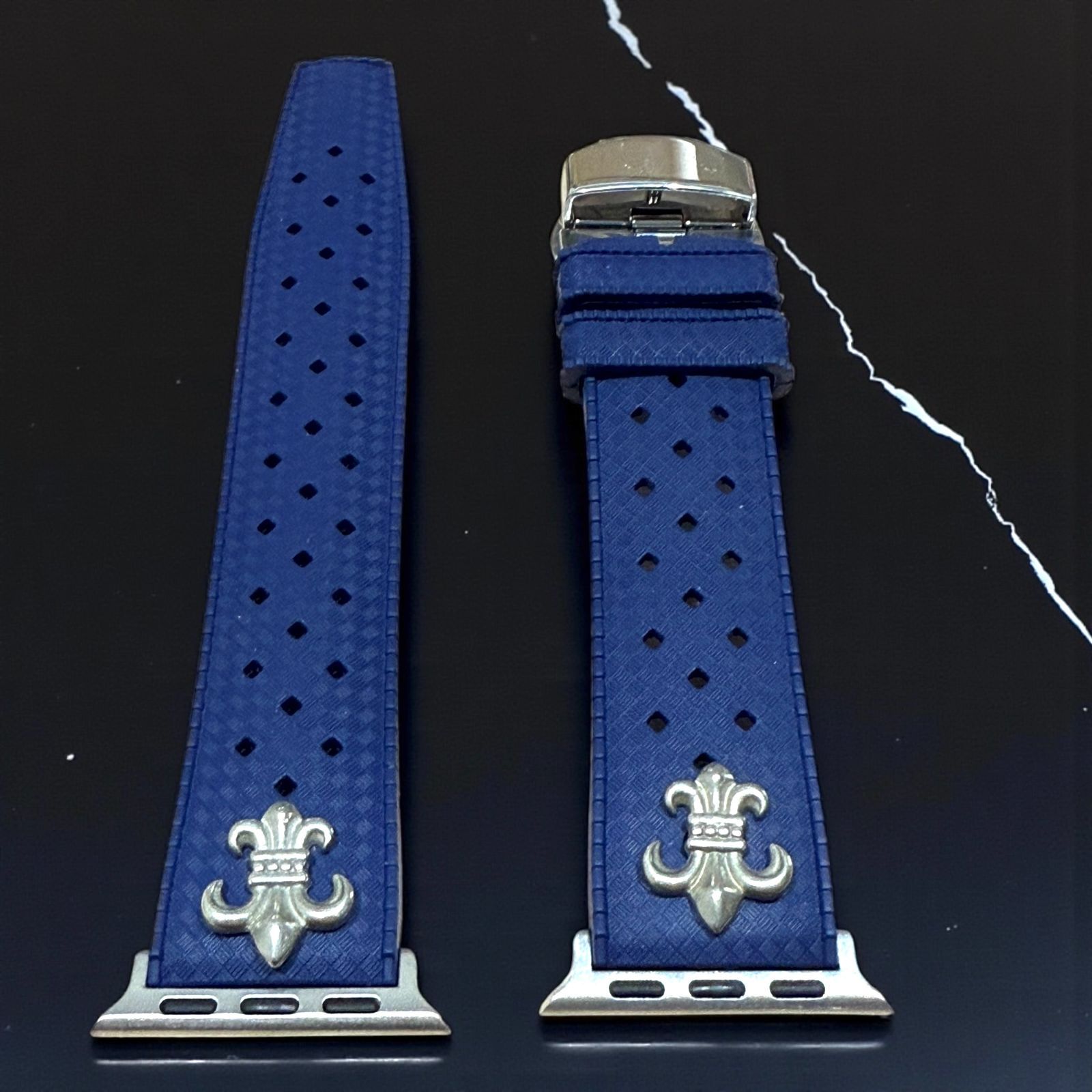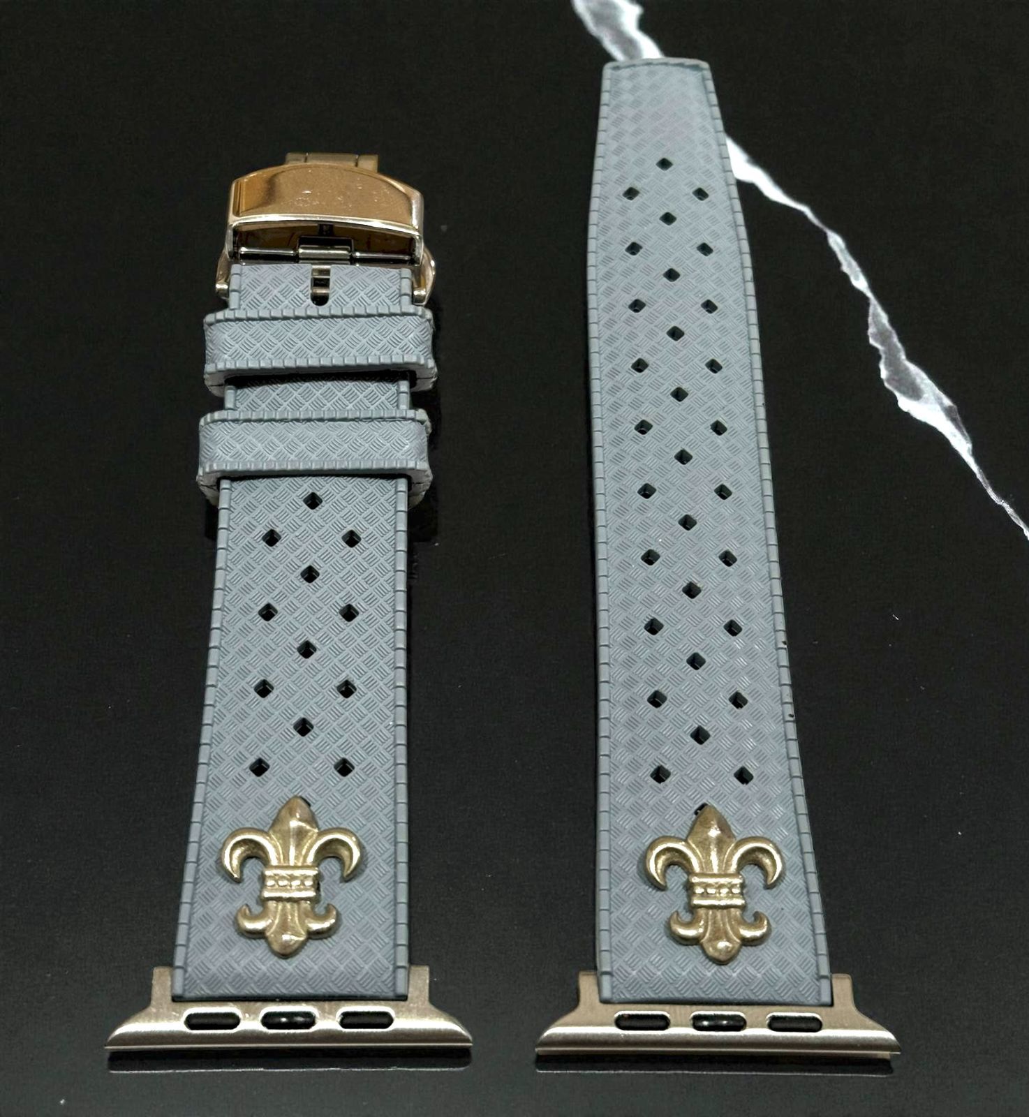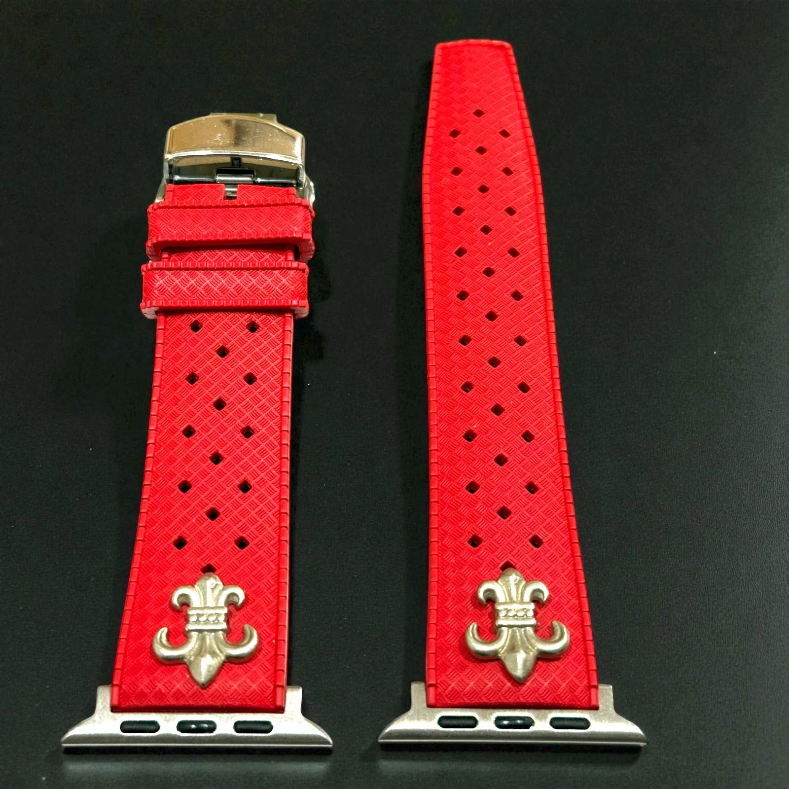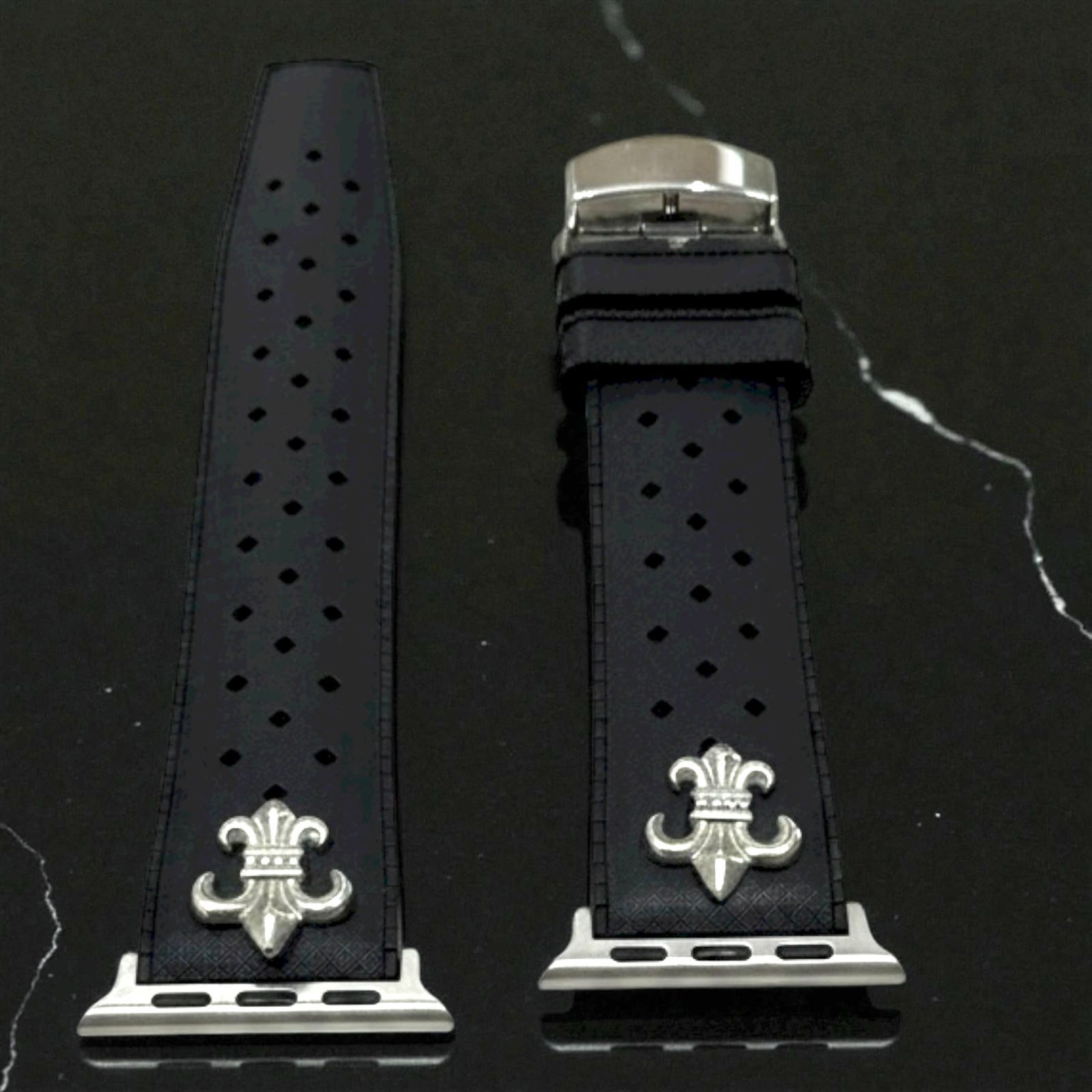 アップルウォッチ フッ素ラバーバンド カスタム クロス 百合 ユリ シルバー Apple Watchカスタム コンチョ付 547