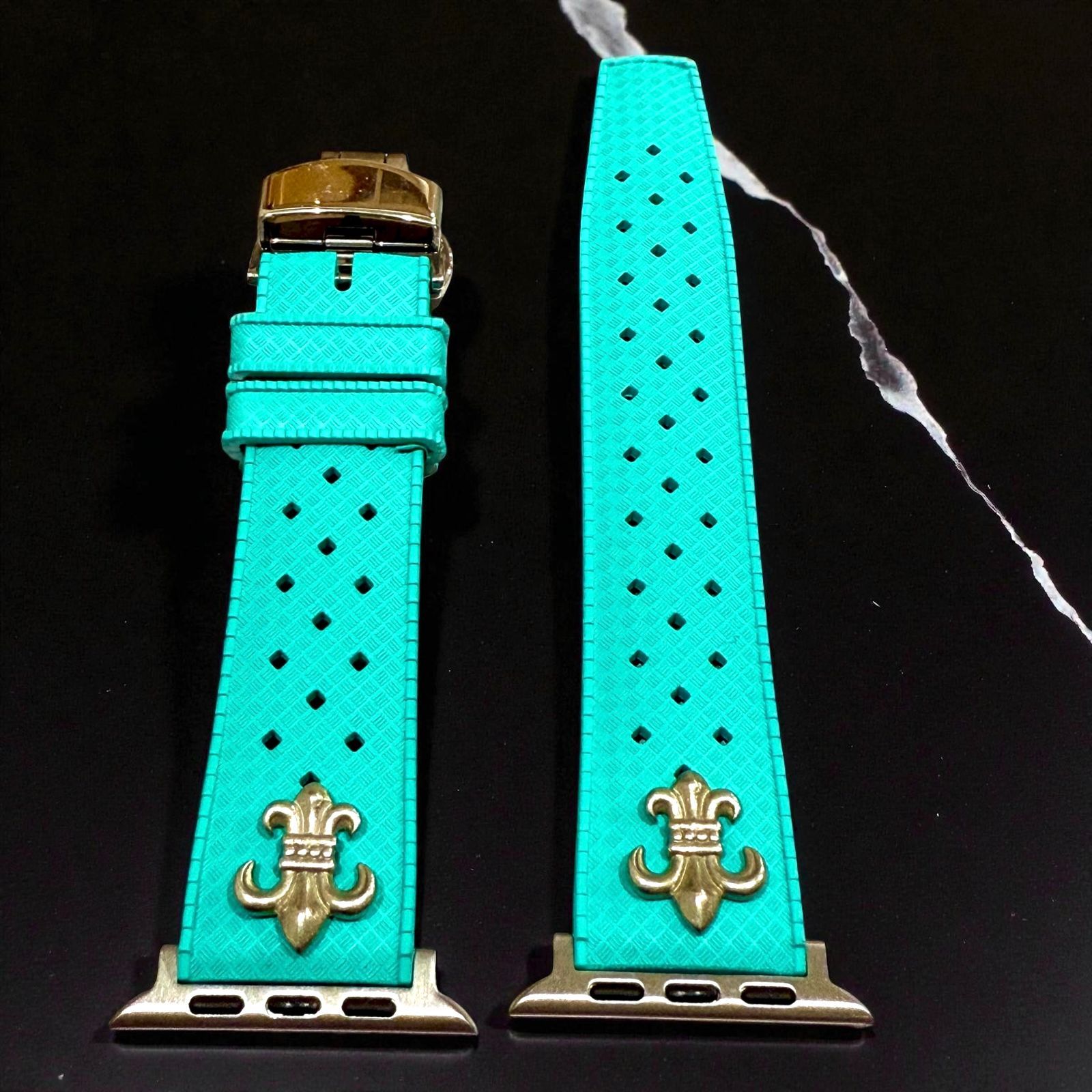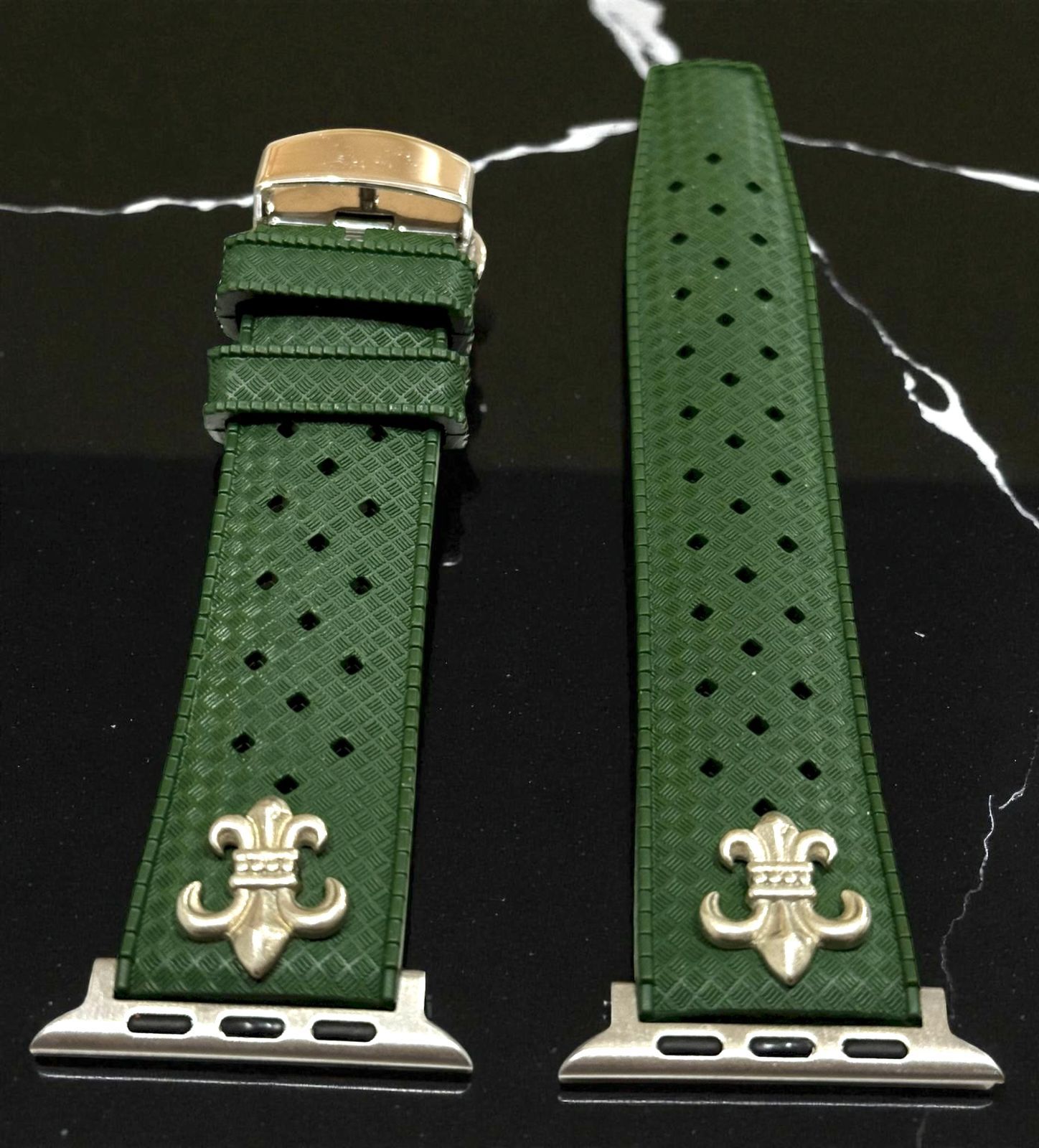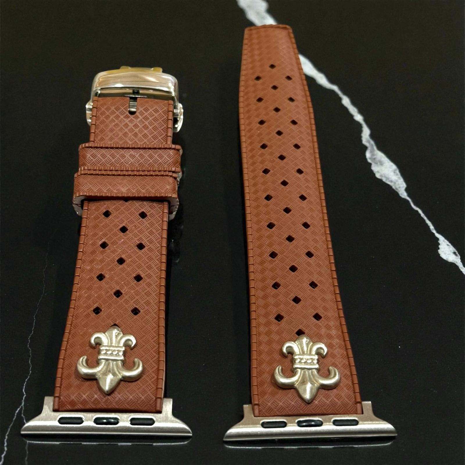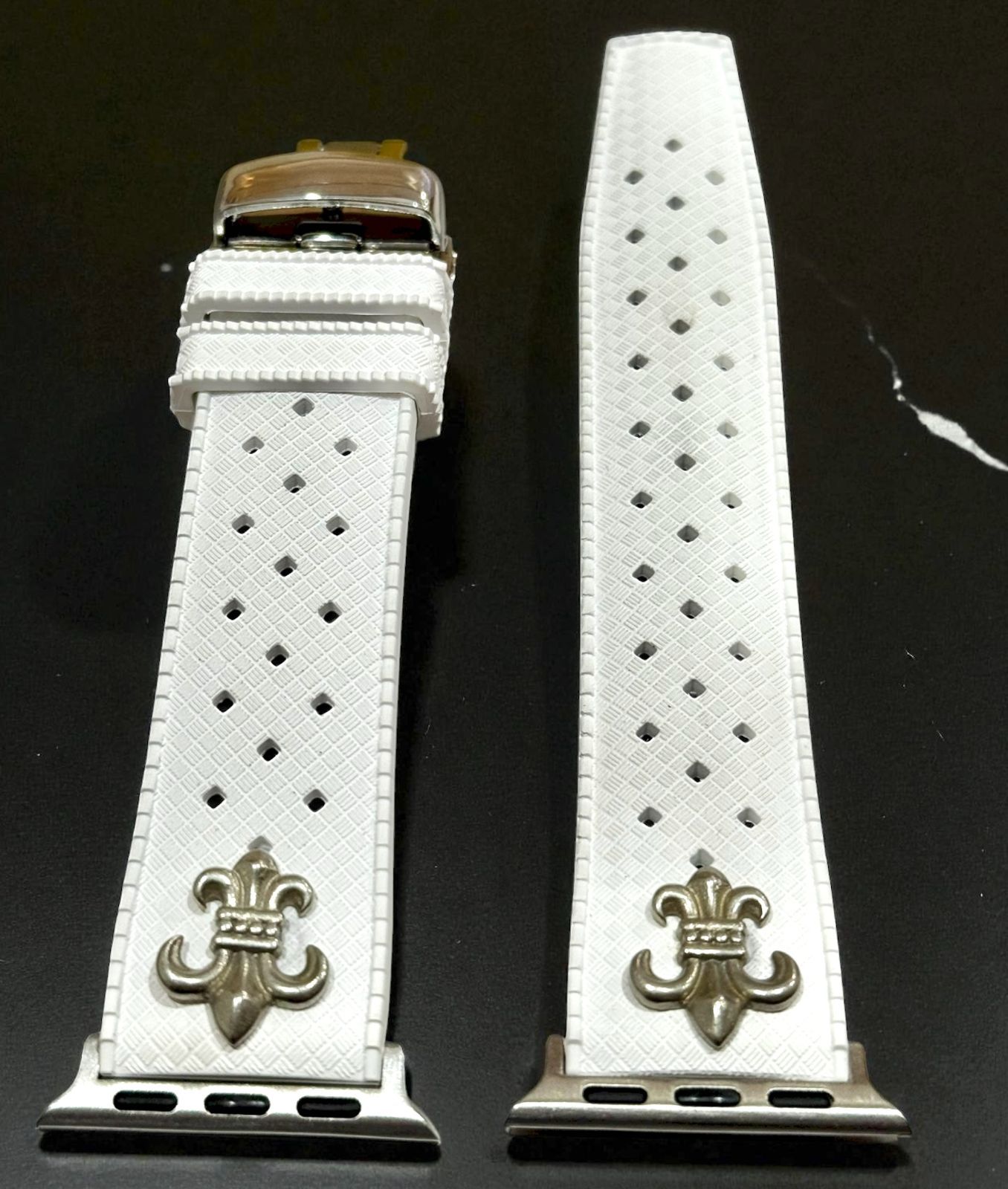 アップルウォッチ フッ素ラバーバンド カスタム クロス 百合 ユリ シルバー Apple Watchカスタム コンチョ付 547