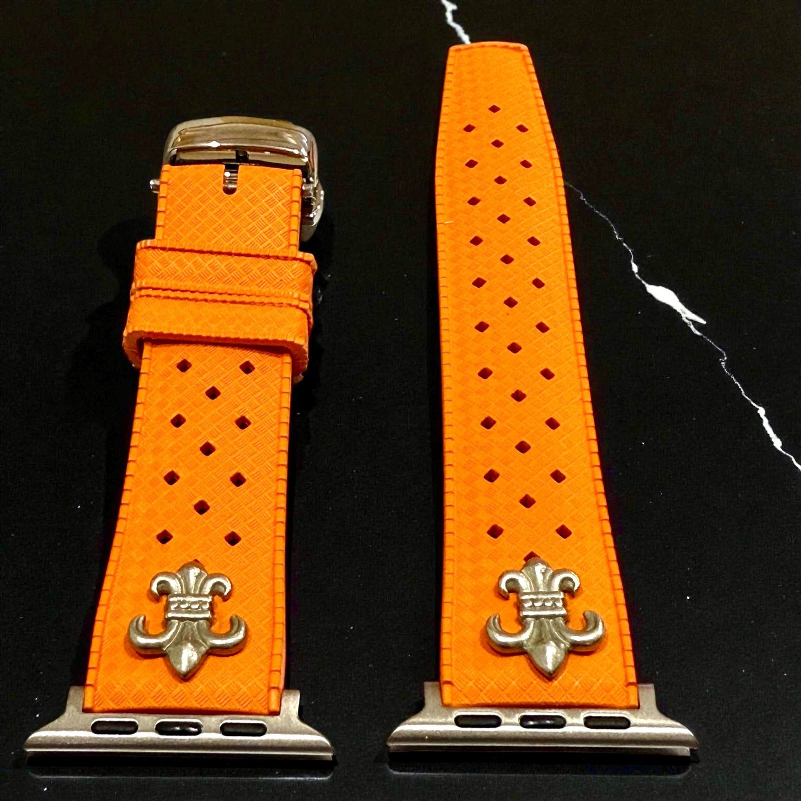 アップルウォッチ フッ素ラバーバンド カスタム クロス 百合 ユリ シルバー Apple Watchカスタム コンチョ付 543