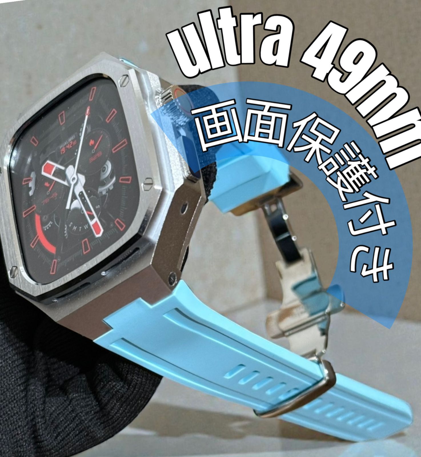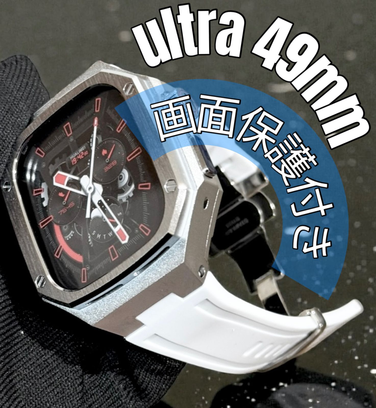 工具不要 最新 46mm 45mm 44mm アップルウォッチ カスタム カバー ケース メタル ラバーバンド ベルト スクリューレス 350