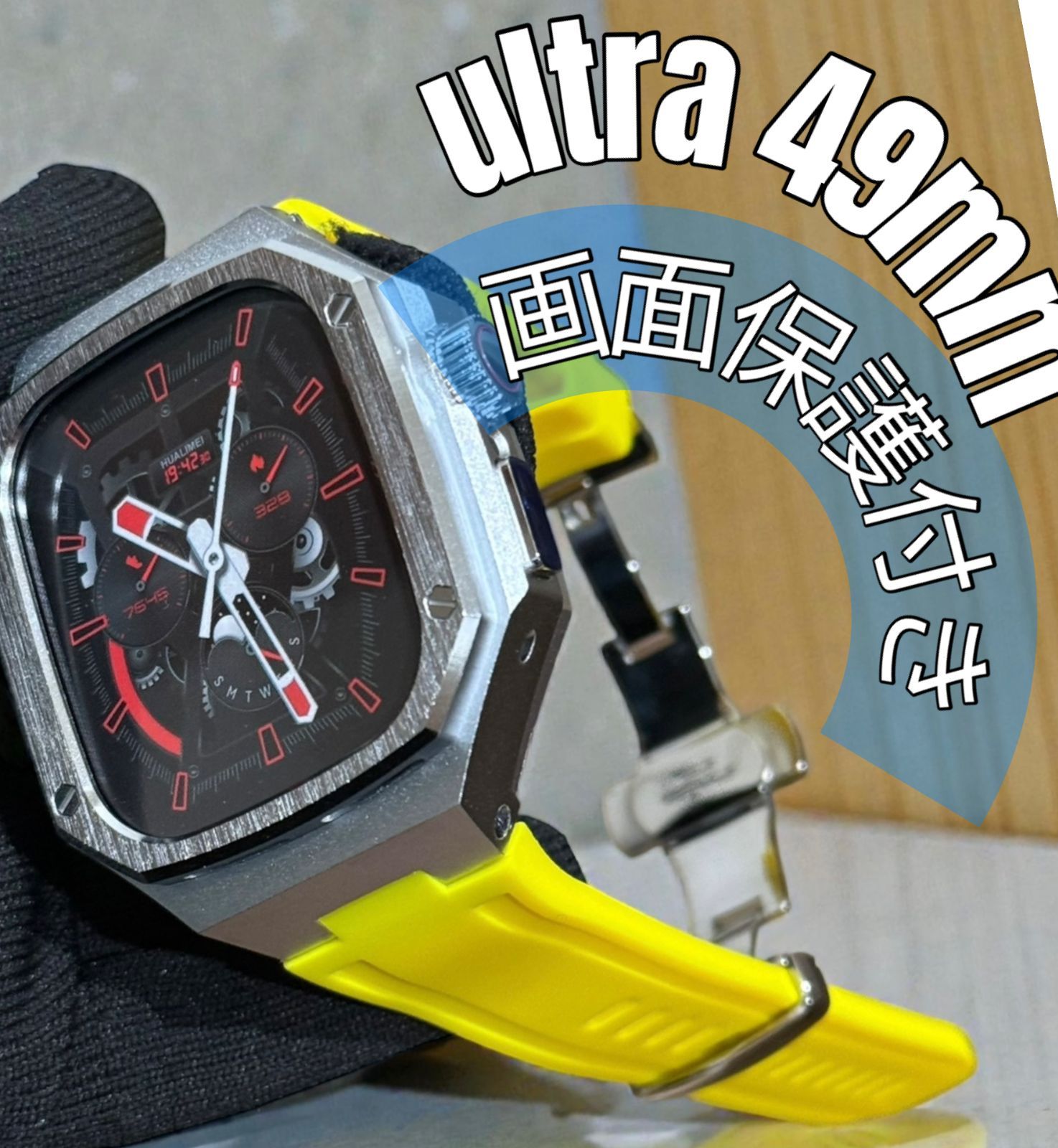 工具不要 最新 46mm 45mm 44mm アップルウォッチ カスタム カバー ケース メタル ラバーバンド ベルト スクリューレス 352
