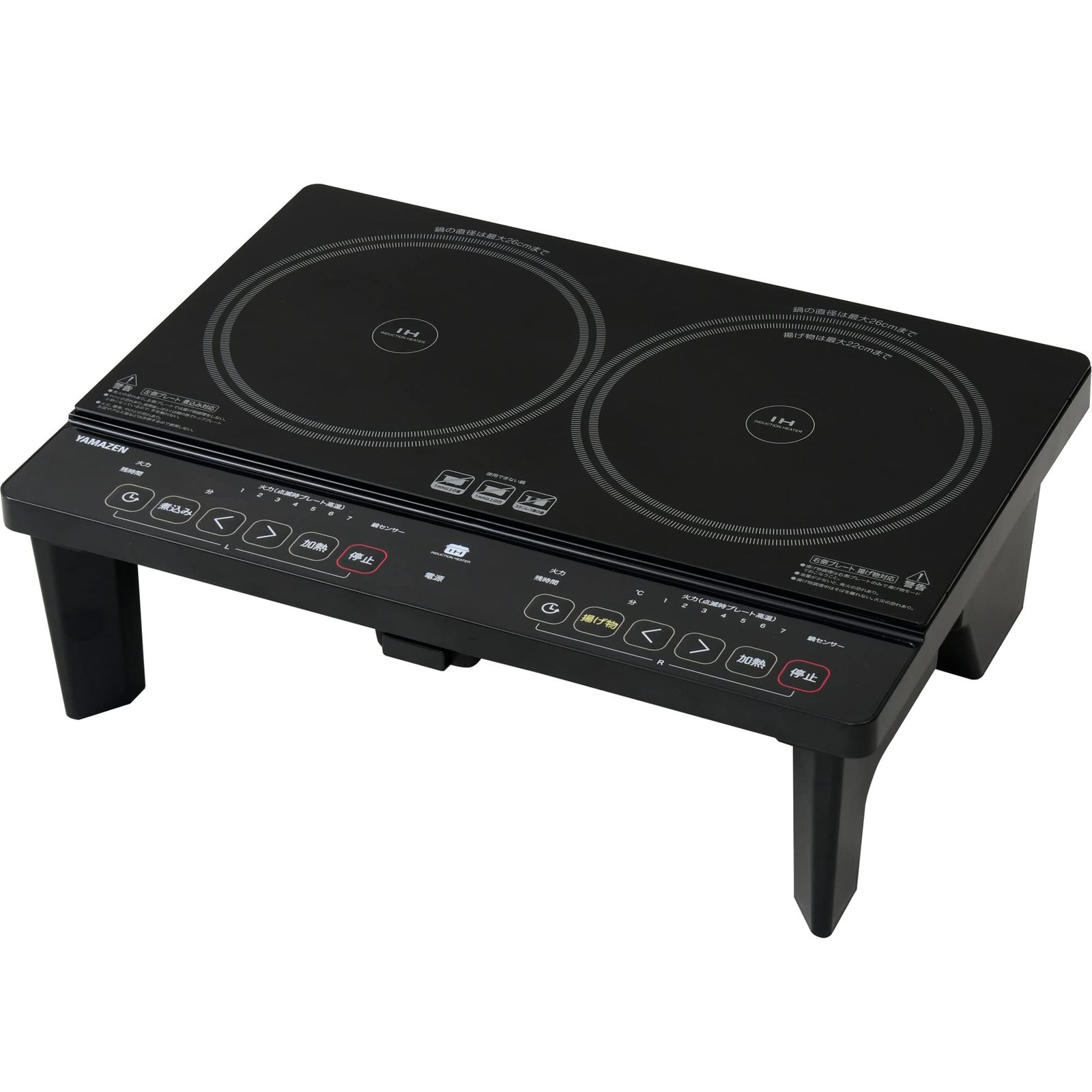 [山善] 2口 IHコンロ IHクッキングヒーター 1400W 一人暮らし 二人暮らし 脚付き IH調理器 工事不要 (幅56cmタイプ) タイマー機能 揚げ物対応 煮込みモード搭載 静音設計 ブラック YES-WL1456(B)/