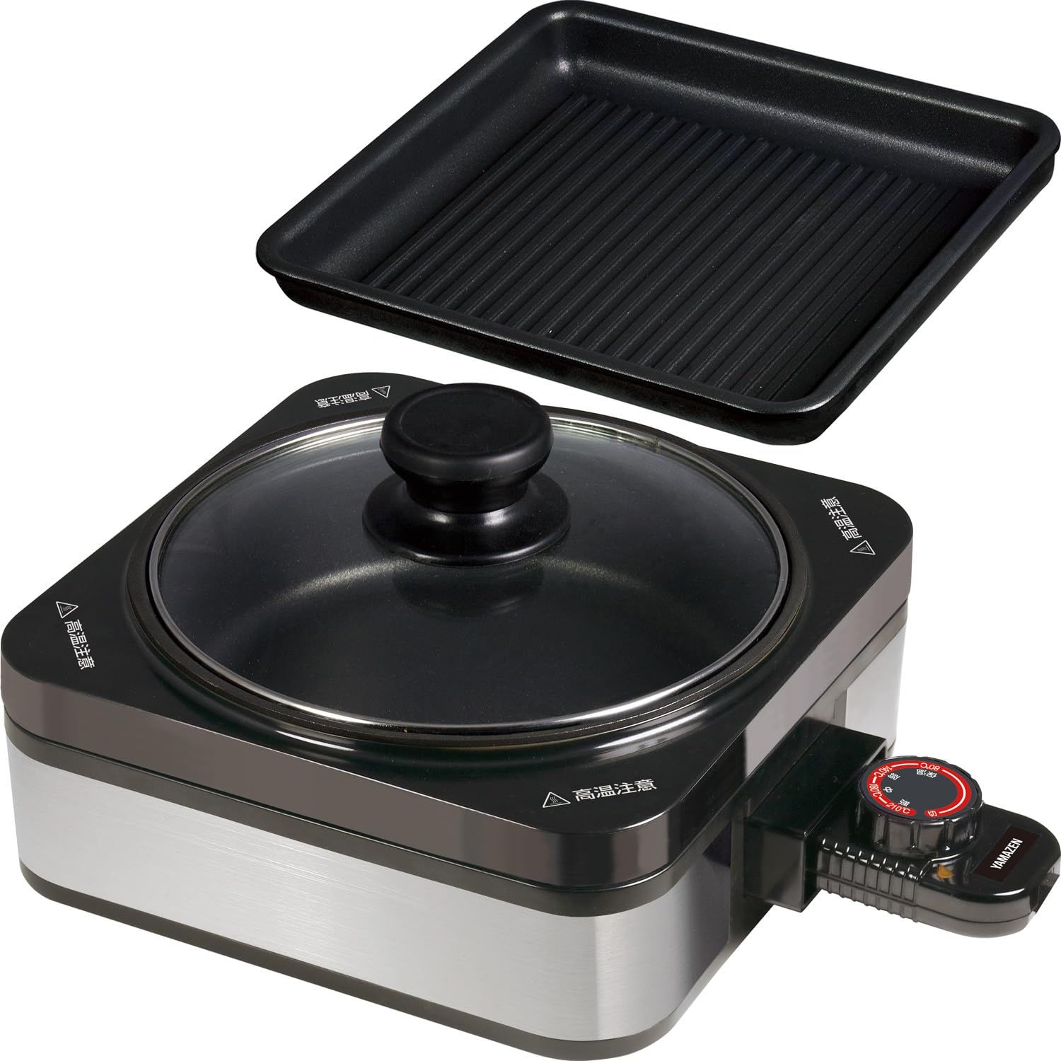 [山善] ホットプレート グリル鍋 一人暮らし用 プレート2種 (波型プレート / 鍋プレート) 着脱式プレート 温度調節機能付き シルバー YHC-W600(S)/