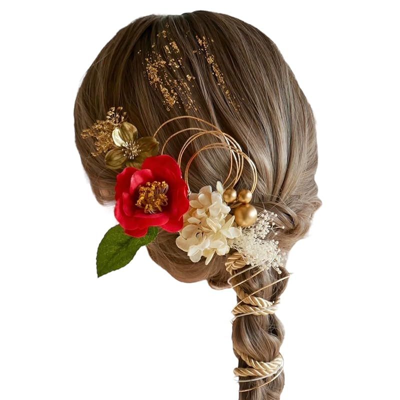 [Lomeri] ロメリ 【11色展開】 髪飾り ロープアレンジ ドライフラワー 成人式 卒業式 結婚式 振袖(赤椿) A196 0