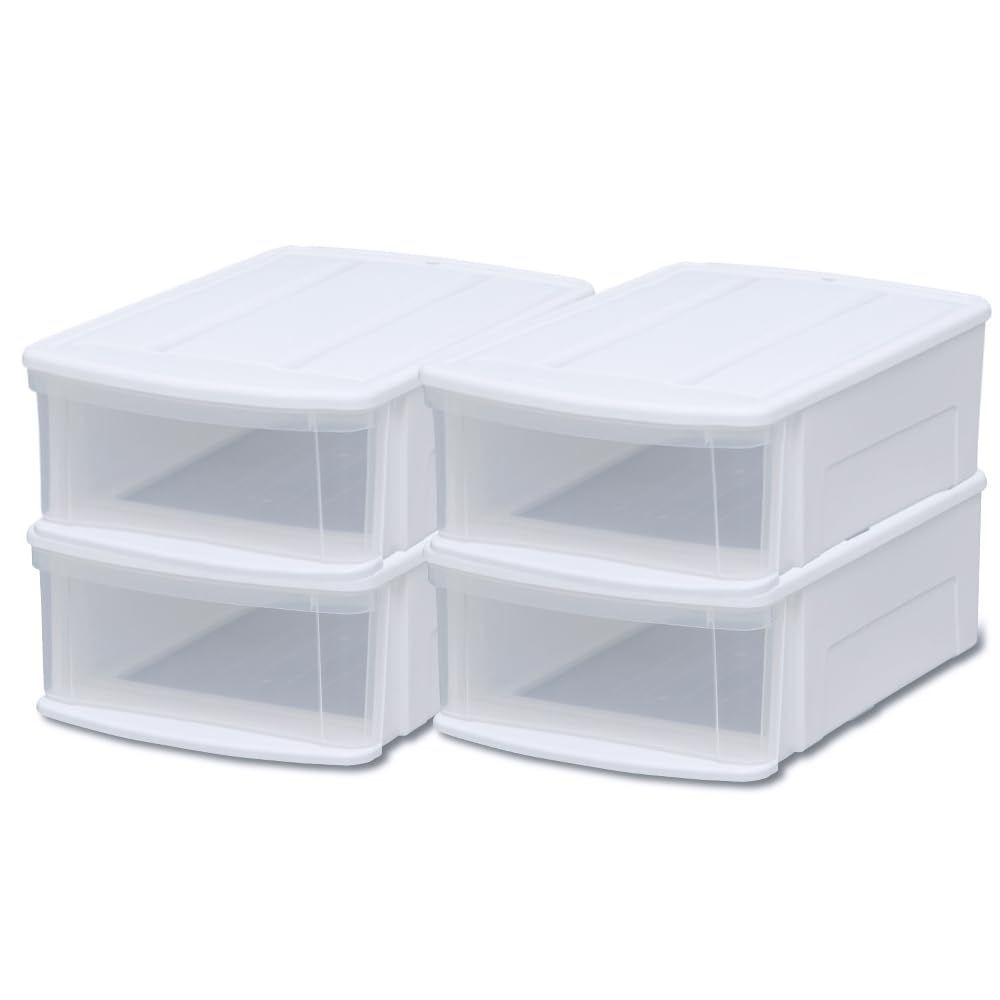 アイリスオーヤマ(IRIS OHYAMA) チェストI 4個セット 幅37.6×奥行52.8×高さ19.7cm ホワイト/クリア M/