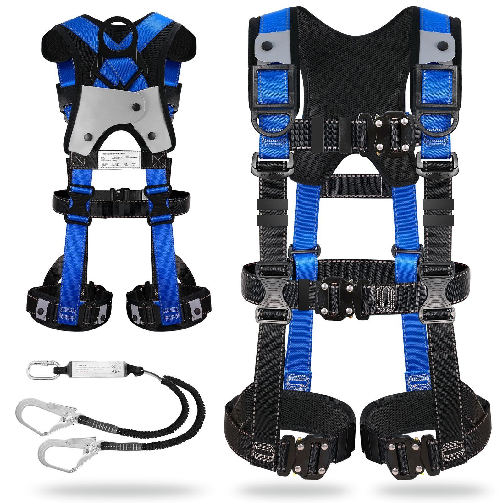 【ラスト1点】肩パッド 収納袋付き 2丁掛け ランヤード付き 墜落制止用器具 ハーネス安全帯 脱着簡単 バックル 高所作業用 ワンタッチ 安全保護 電気工事 - フルハーネス安全帯 セット 落下防止 新規格 フルハーネス