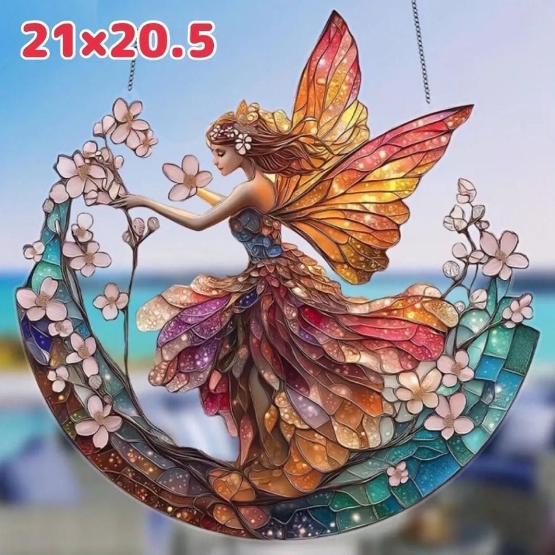 サンキャッチャー 妖精 フェアリー 三日月 ステンドグラス風 インテリア雑貨