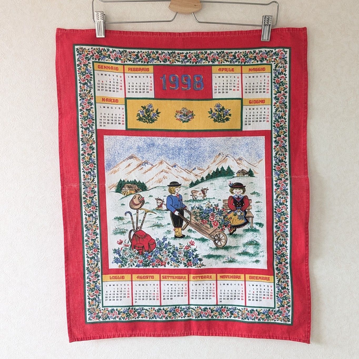 【1998年】ファブリックカレンダー タペストリー ティータオル アルプスの風景
