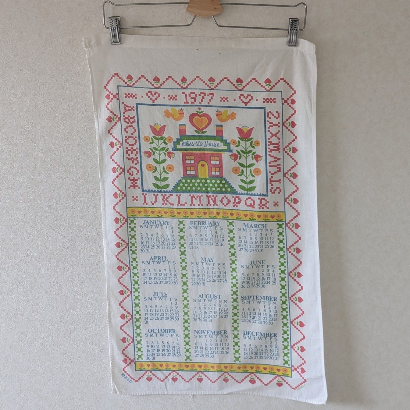 【1977年】ファブリックカレンダー タペストリー ティータオル Bless this House