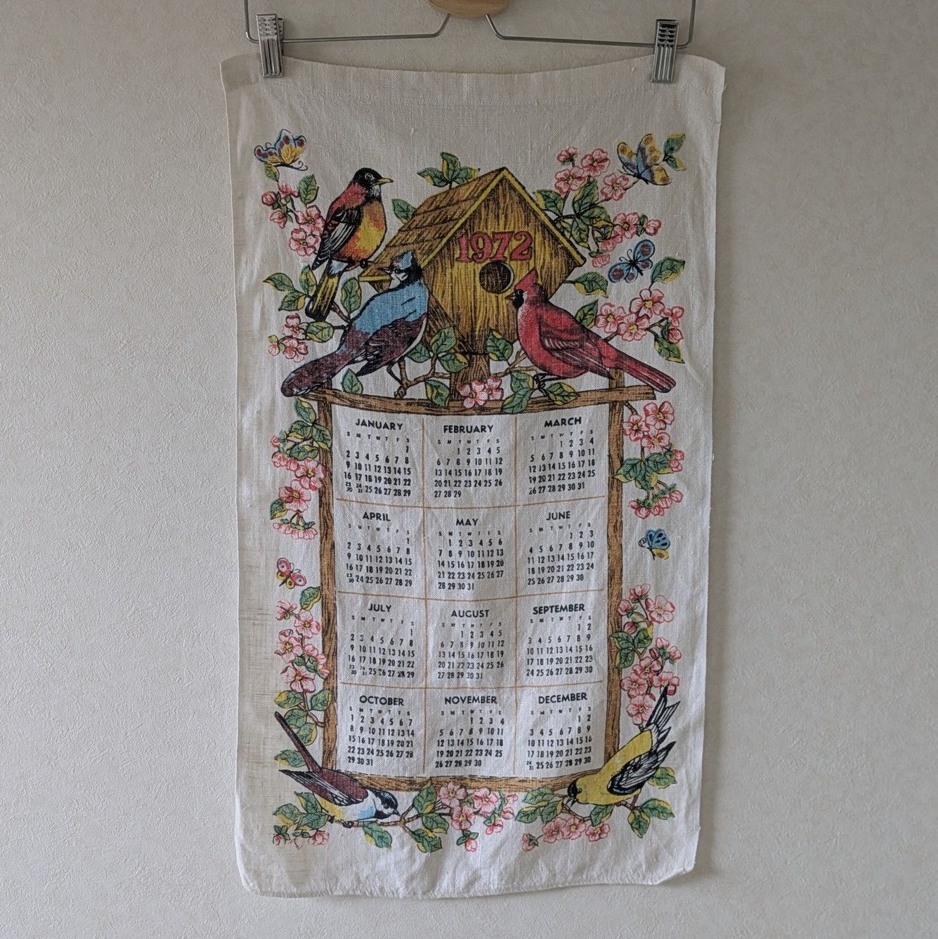 【1972年】ファブリックカレンダー タペストリー ティータオル 小さな鳥小屋