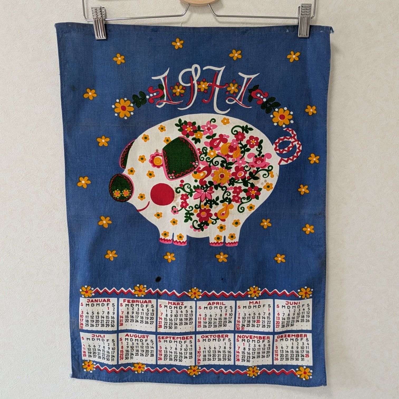 【1971年】ファブリックカレンダー タペストリー ティータオル チロルなブタ