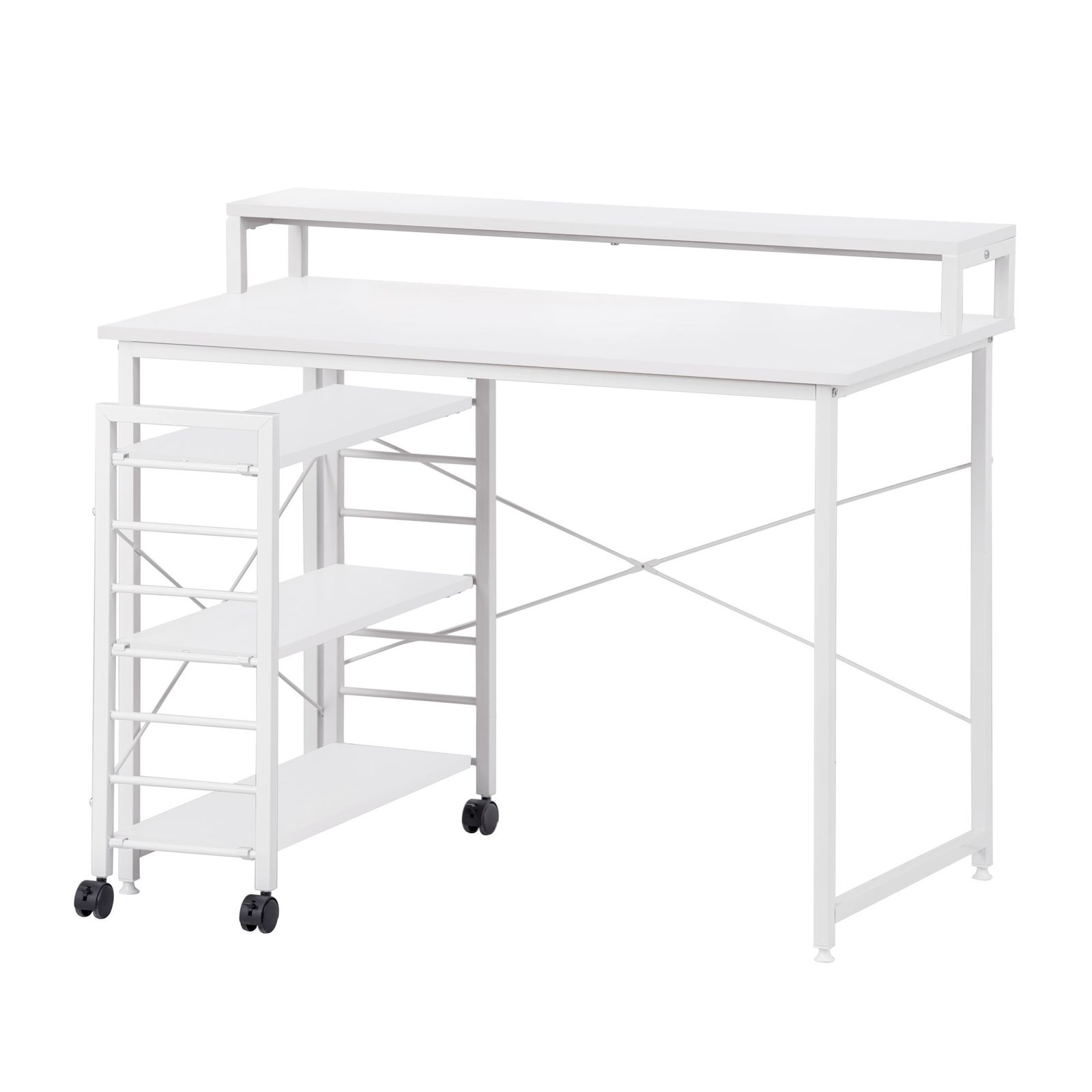 新入荷|新品登場ホワイトパソコンデスク キャスター付きで移動可能ラック付き デスク ワークデスク オフィスデスク 学習デスク ホワイト