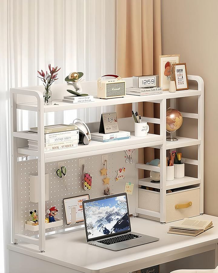 AOVOCO 机上ラック 本棚 有孔ボード デスク上置き棚 卓上ラック 多段収納 おしゃれ 2枚有孔ボード (ホワイト, 幅95cm)
