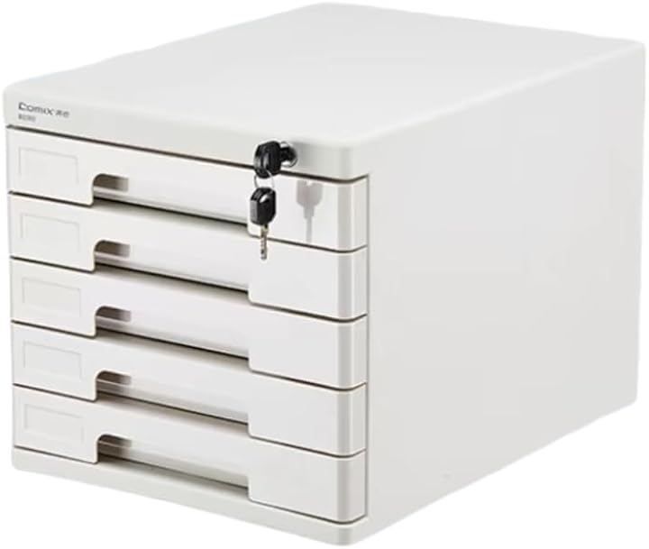 Jiza 鍵付き ミニチェスト オフィス 雑貨 卓上収納ケース 引き出し デスクトップ 装飾品 化粧品 文房具 机上収納 (グレー, 5段)