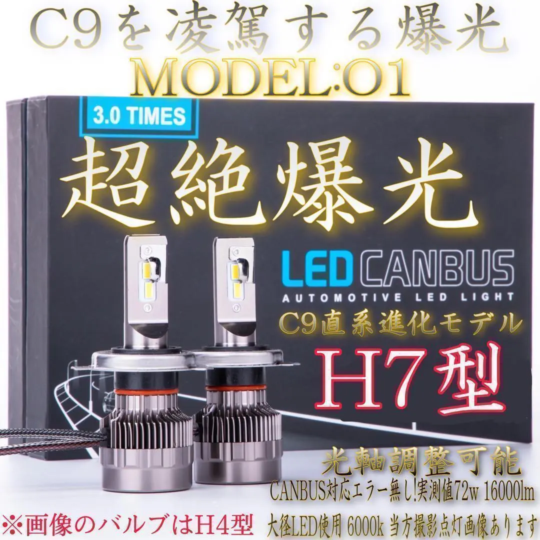 H7 超絶爆光 純白 LED バルブ ヘッドライト O1 6000k AB1