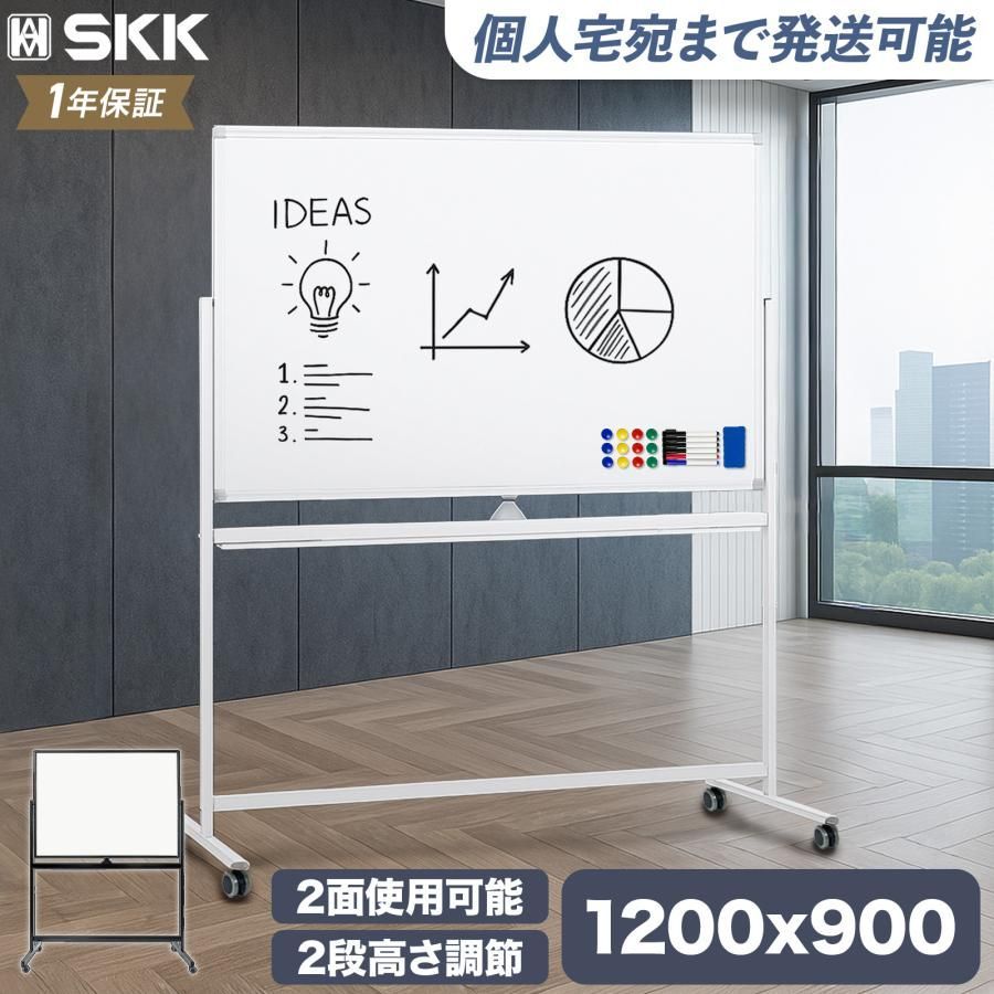 ホワイトボード 1200×900 脚付き 両面 回転式 スチール キャスター付き 事務所 会社 会議 オフィス