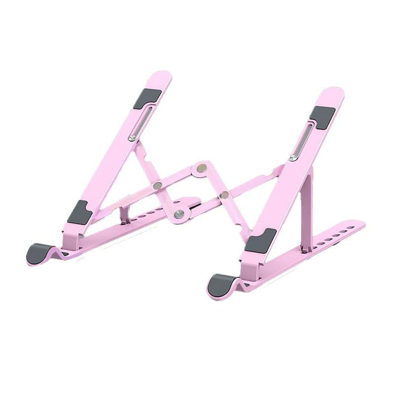 ノートパソコンスタンド (ピンク) PCスタンド 折畳み 持ち運び 高さ調整 角度調整 軽量 肩こり 疲れない 姿勢良くなる [桃]
