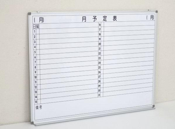 送料無料(離島を除く他条件あり)アウトレット新品 横書き予定表 幅1200x高900 スチール マグネットOK