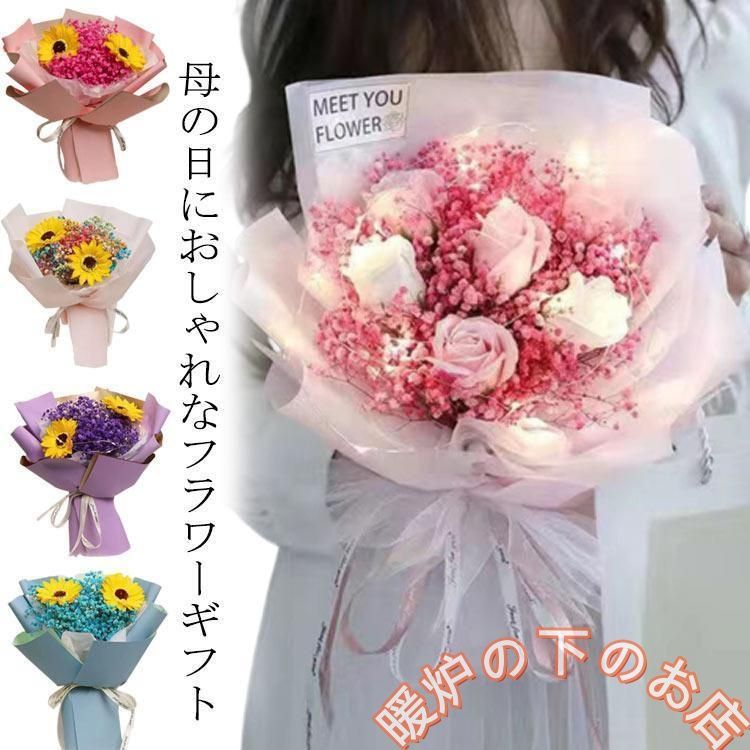 3点セット ソープフラワー ソープ フラワー フラワーギフト LEDライト付き ハンドバッグ付き 誕生日 ホワイトデー 花束 母の日 新築祝い フラワ75103