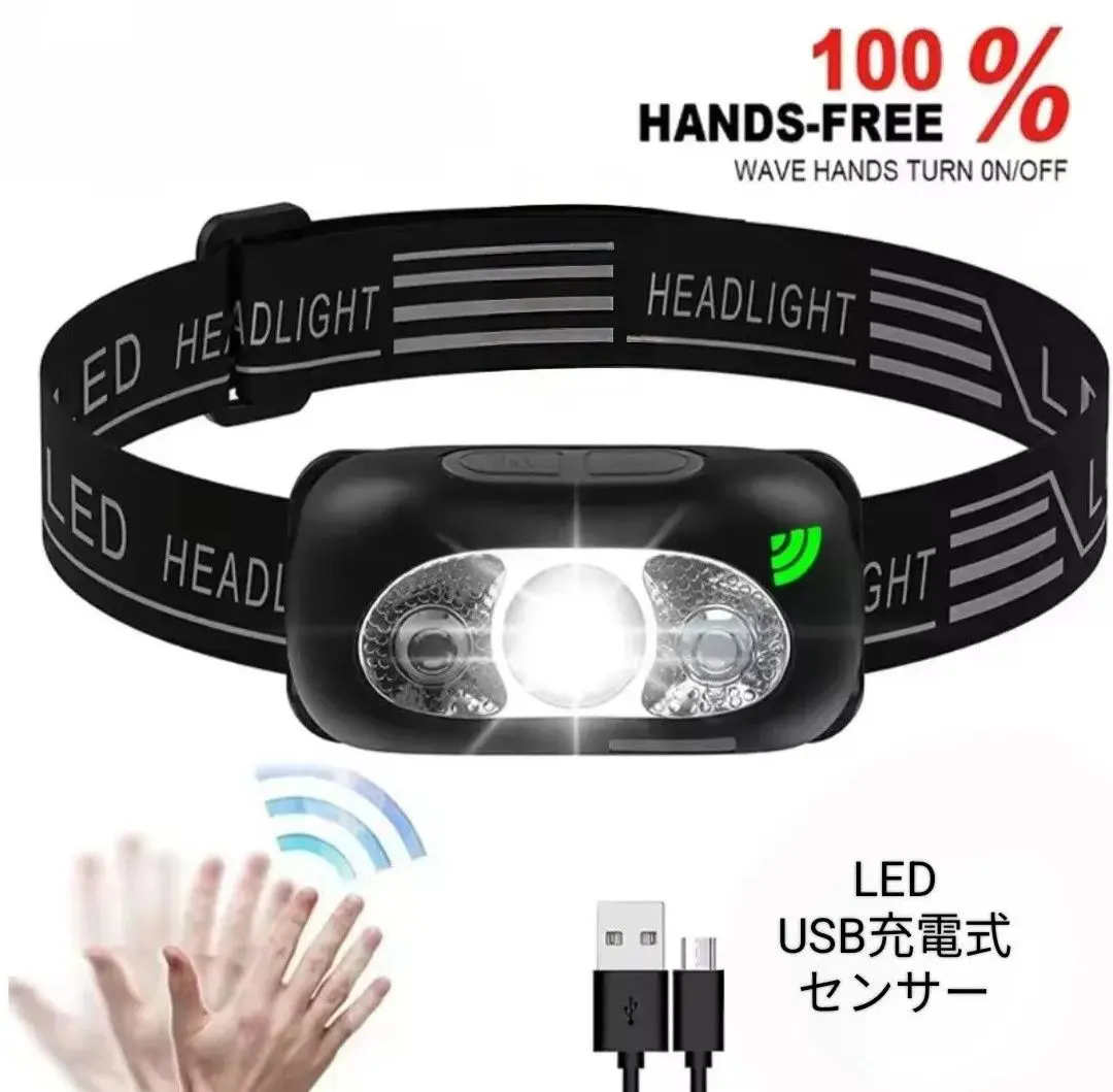 充電式&モーションセンサー 軽量 小型 ヘッドライト LED