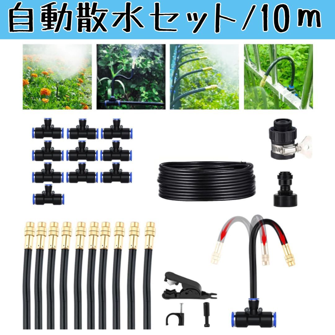 【AnJieYa】噴霧器 ノズル 10M ガーデン用 点滴灌漑キット 自動 温室/庭/芝生/植物用 調節可能 ガーデン散水 ミスト システム ホース チューブ ミスト発生器 自動散水セット 260407W005