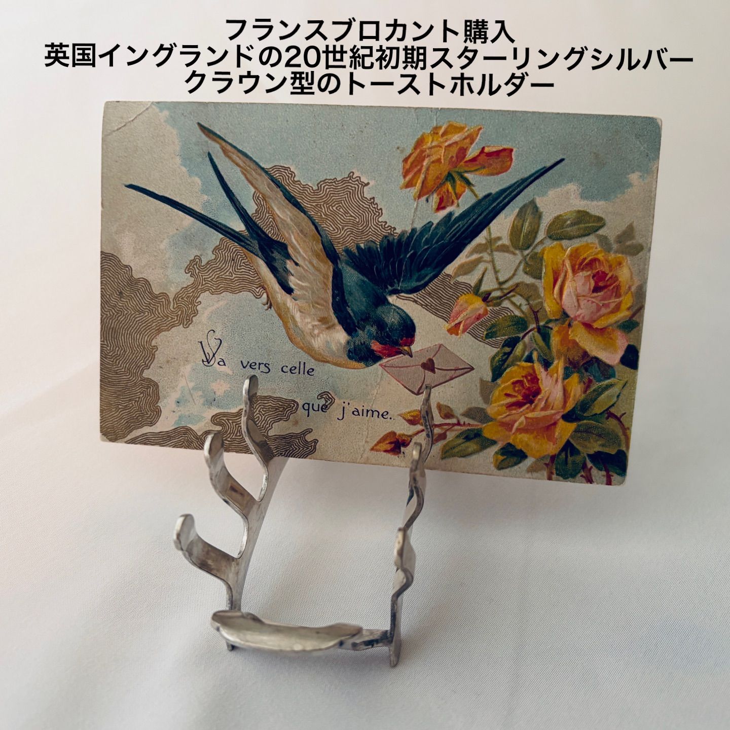 フランスブロカント購入/英国イングランドの20世紀初期スターリングシルバークラウン型のトーストホルダー